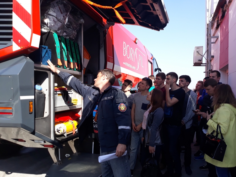 Студенти дізнались про будову літаків, вантажопідйомність та інші технічні характеристики. Зацікавлено слухали розповідь про конструкції літаків, їх призначення та різноманітну техніку, яку використовують співробітники аеропорту для обслуговування авіаперевезень. Дуже детально й презентабельно була проведена екскурсія працівниками пожежного депо та кінологічної служби. Приклади своєї роботи пожежні демонстрували використовуючи справжню техніку, машини, подовжувачі, спеціальне обладнання для захисту людини під час гасіння пожежі.