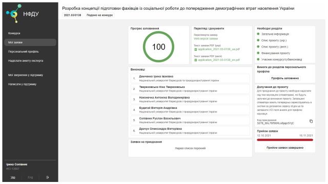 9) Успішна подача наукових проектів. На конкурс проєктів фундаментальних і прикладних досліджень та науково-технічних (експериментальних) розробок на 2022 рік подано до МОН України проєкт на тему «Професійна підготовка соціальних працівників до роботи з інформування населення, постраждалого від надзвичайних ситуацій». Розроблено разом із здобувачами третього рівня вищої освіти (Будегай Вікторія, спеціальність «Освітні, педагогічні науки» та Драчук Олександра, спеціальність «Професійна освіта») проєкт і подано до Національного фонду досліджень на тему «Розробка концепції підготовки фахівців із соціальної роботи до попередження демографічних втрат населення України».