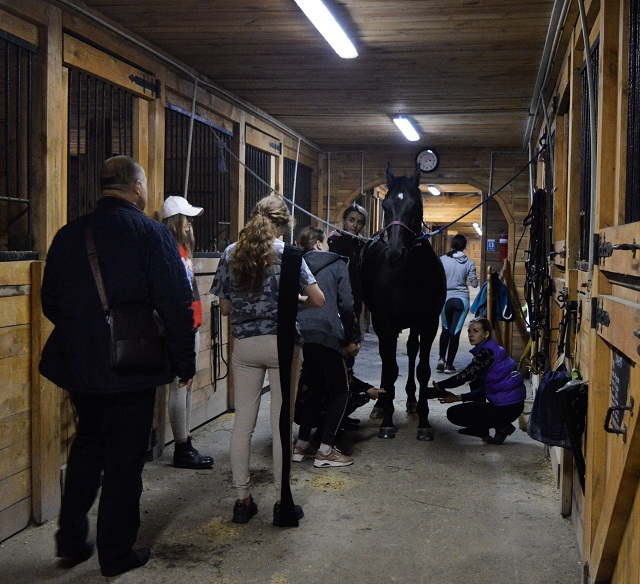 Магістри ознайомились з режимом та раціоном годування коней, з особливостями їх утримання в лабораторії конярства НУБіП, зі спорядженням для керування конем. Особлива увага студентів була акцентована на питаннях безпеки вершника та оточуючих людей, правильність рухів коня, гармонізацію рухів коня і вершника під час лікувальної їзди.Багато в чому це залежить від вибору та підготовки коня. Іпотерапію, як відомо, проводять з людьми, у яких є вади рухового апарату, нервової системи чи певних органів. Тому вимоги до використання коней для іпотерапії інші, ніж до звичайних робочих, спортивних чи прогулянкових коней. Майбутні магістри мали змогу поспостерігати за рухами коней, вивчити їх поведінку в деннику чи стійлі, звернути увагу на норов, доторкнутися долонею до них, пригостити ласощами з розкритої долоні і врахувати їхні дії. Особливий захват викликали шетлендські поні, середня висота яких 100 см.