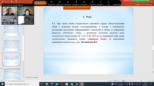 20 травня 2022 року відбулося чергове засідання вченої ради економічного факультету.