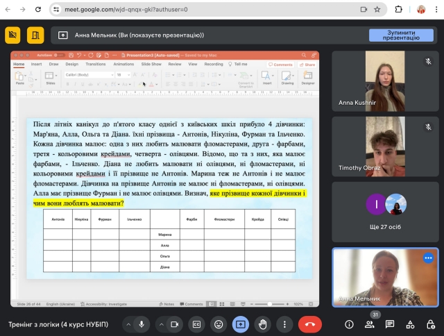 В кінці тренінгу слухачі отримали посилання на гугл-форму зі спеціально створеними логічними задачами різного рівня складності з детальними відповідями, для практики та самоконтролю.