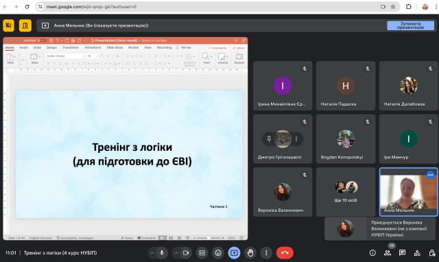В суботу 11 травня 2024 року на юридичному факультеті відбувся перший з чотирьох запланованих онлайн-тренінгів з логіки, організованих співробітниками кафедри теорії та історії держави і права Іриною Єрмоленко, Анною Мельник, Світланою Авраменко та Тарасом Панталієнком за сприяння керівництва факультету.