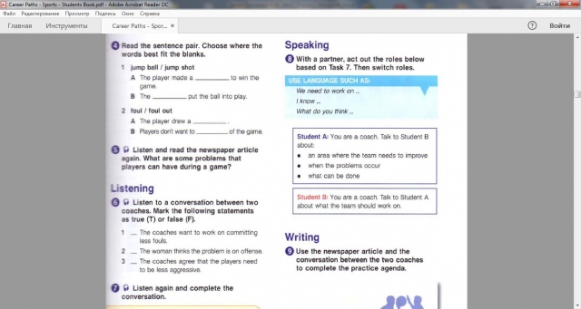 Кожна тема заняття розглядається в єдності всіх необхідних навчальних компонентів: студенти вивчають нову лексику, активно застосовуючи її в читанні й перекладі нових текстів, у виконанні вправ і різнопланових завдань типу «Choose the correct variant (answer)», «Match the words and their definitions», «Choose where the words best fit the blanks» тощо, прослуховують діалоги та складають власні на тему, що вивчається, узагальнюють матеріал заняття у письмових завданнях на основі переглянутих відеоматеріалів.