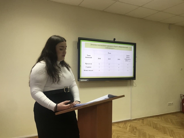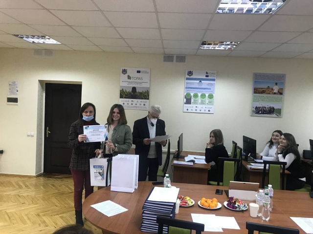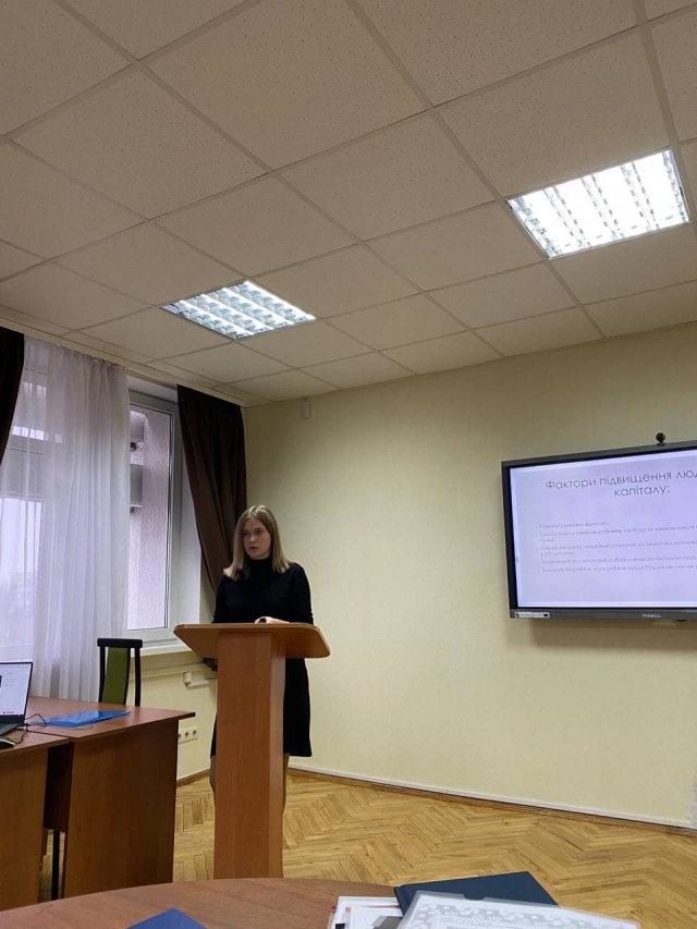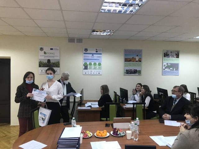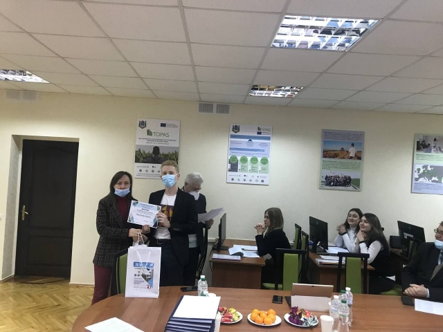 Перед початком роботи Екзаменаційної комісії до магістрів з вітальним словом звернулася завідувачка кафедри економіки Вікторія Байдала, яка побажала їм успіхів та вручила пам’ятні подарунки за кращі постерні презентації результатів виконання наукових робіт на студентській конференції, що відбулася 25 листопада 2021 р.