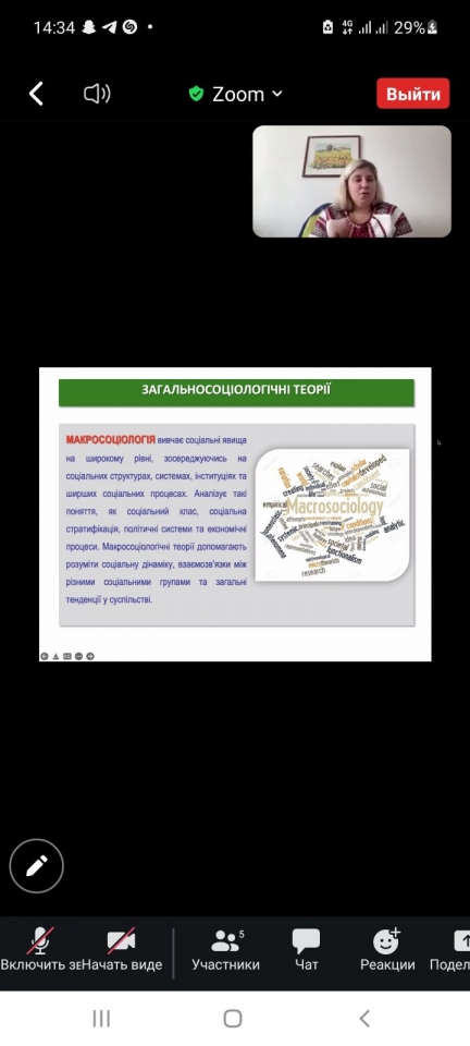 Лектор акцентувала увагу на тому, що традиційні підходи до вивчення суспільства в соціології часто зосереджувались на колективних структурах, звичаях, нормах, інститутах та макроаспектах суспільства. Вони дозволяли розуміти загальні закономірності та функціонування суспільства в цілому, не звертаючи значної уваги на індивідуальні аспекти.