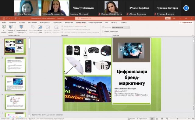 11 квітня 2022 року доцент кафедри маркетингу та міжнародної торгівлі Ніколаєвська Вікторія Вікторівна провела загальноуніверситетську відкриту лекцію з дисципліни “Брендинг” на тему “Цифровізація бренд-маркетингу” для студентів спеціальності Маркетинг.