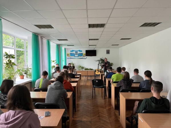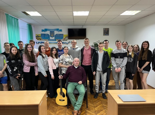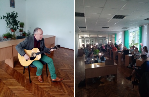 Володимир Васильович разом зі студентами заспівав найпопулярніший зараз світовий хіт – Гімн Січових стрільців «Ой у лузі червона калина», та виконав інші пісні. Неперевершено звучала поезія Василя Симоненка у його виконанні. Насамкінець, він закликав усіх єднатися та вірити в нашу Перемогу!