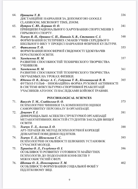 Прасол Артур (науковий керівник: завідувач кафедри фізичного виховання Костенко М.П.): «Особливості розвитку витривалості футболістів у навчально-тренувальному процесі»;