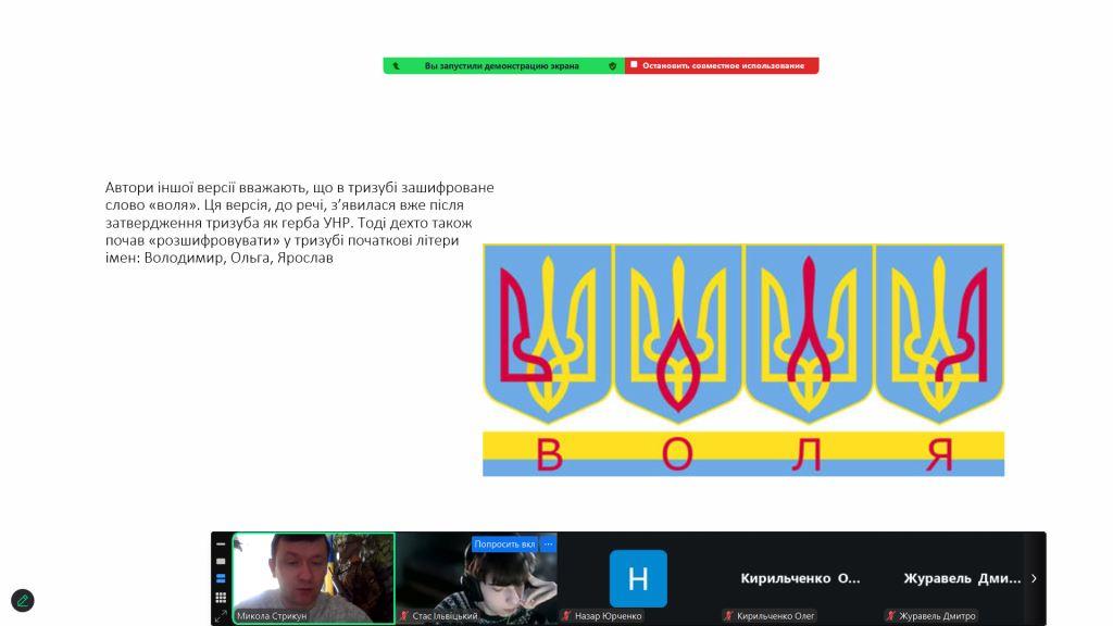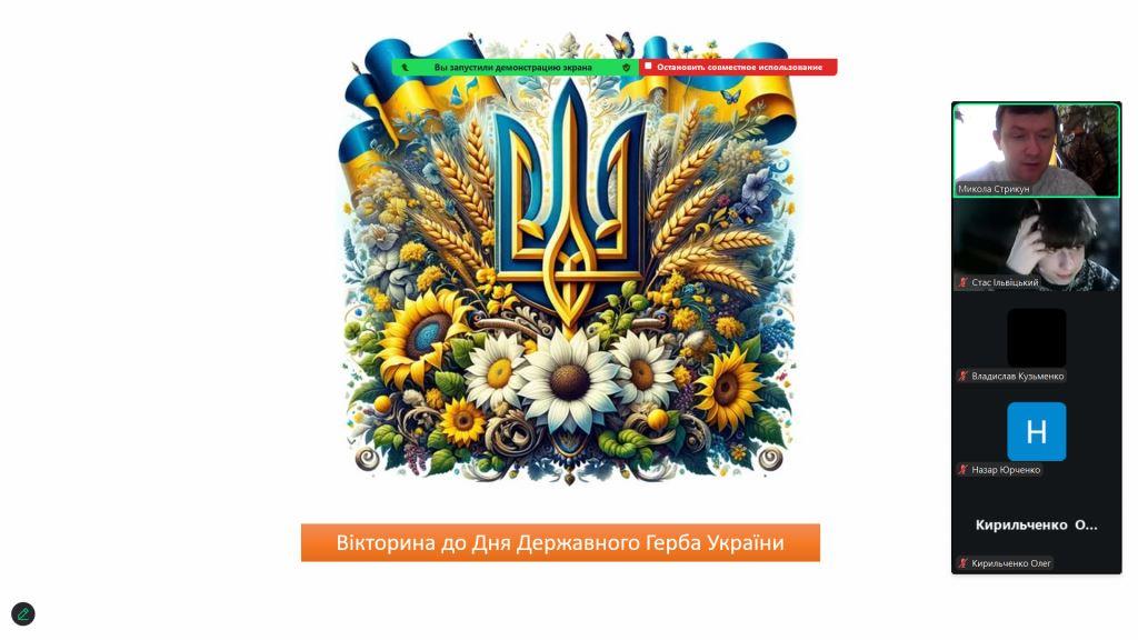 Патріотичний акцент тижня — онлайн-вікторина до Дня Державного Герба України, під час якої учасники відповідали на запитання щодо походження тризуба, його князівських витоків та сучасного значення, знайомилися з археологічними пам’ятками й історичними документами. Захід поєднав навчання та виховання, сприяв формуванню патріотичних цінностей і гордості за державні символи України.