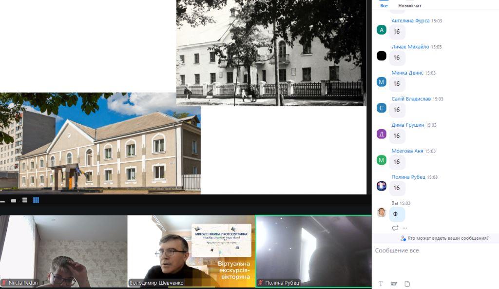 Історичну тематику продовжила екскурсія-вікторина «Минуле Ніжина у фотосвітлинах», де учасники визначали сучасний вигляд локацій за архівними фото, дискутуючи про зміни міського простору.