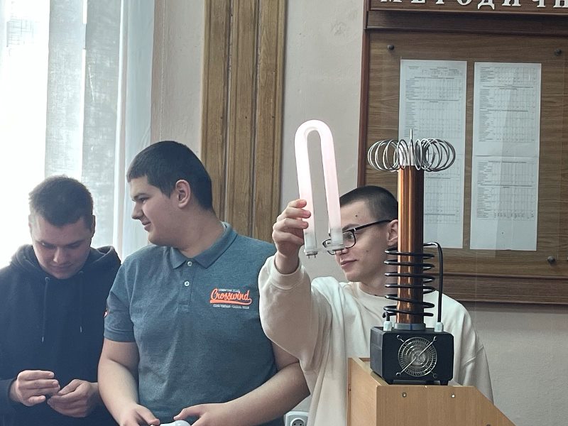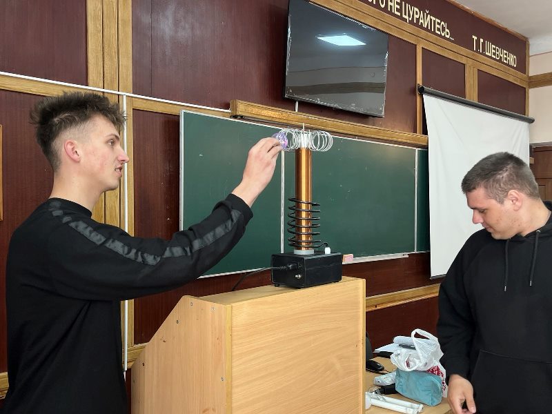 Досліди з котушкою Тесли стали не просто ефектним шоу з «ручними блискавками», а справжньою демонстрацією фундаментальних законів електродинаміки. Завдяки потужному високочастотному електромагнітному полю, яке створює пристрій, студенти змогли наочно спостерігати явища, що зазвичай залишаються прихованими: безпровідне свічення ламп; виникнення стримерів та іскрових розрядів; електромагнітний резонанс; скін-ефект та іонізацію повітря; відтворення звуку через електричний розряд («музика блискавок»). Заняття мало не лише навчальний, а й потужний мотиваційний характер. Студенти другого курсу побачили реальний результат навчання — те, як теоретичні знання трансформуються у конкретні технічні проєкти. Така форма роботи сприяє розвитку професійних компетентностей, стимулює інтерес до технічної творчості та зміцнює зв’язок між різними етапами підготовки фахівців спеціальності 141 Електроенергетика, електротехніка та електромеханіка.