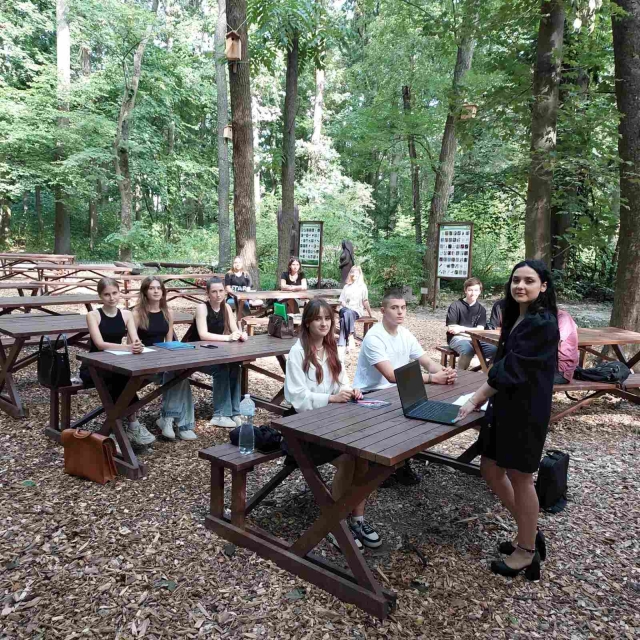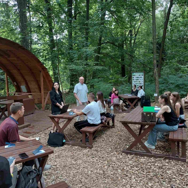 Розпочалася наша педагогічна практика, з огляду на сприятливі погодні умови, в спеціально обладнаних на території НУБІП України, зокрема, в ботанічному саду, екокласах.