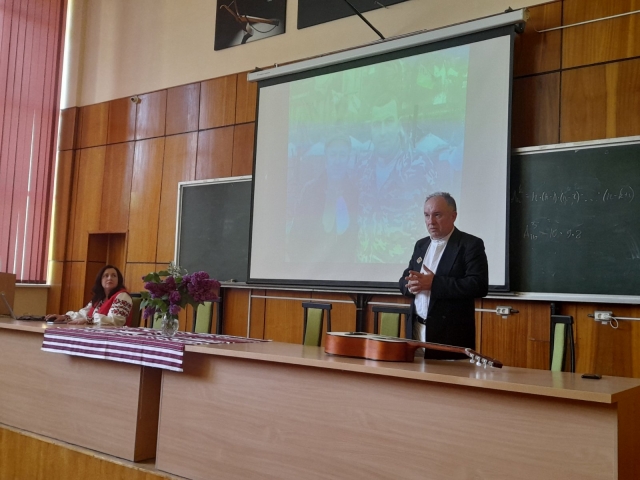 Спілкування активно супроводжувалося патріотичними гімнами, думами та романсами, за участю всіх присутніх. Студенти активно задавали питання гостю, цікавились справедливістю історичних подій, прагнули почути думку публіциста, в аналізі діяльності органів влади, на різних етапах розвитку нашої держави. В розмові, багато уваги приділялося кривавим діям росії, у відношенні українського народу і його етносу, подіям «Революції на граніті», «Помаранчевої революції» та «Революції гідності».