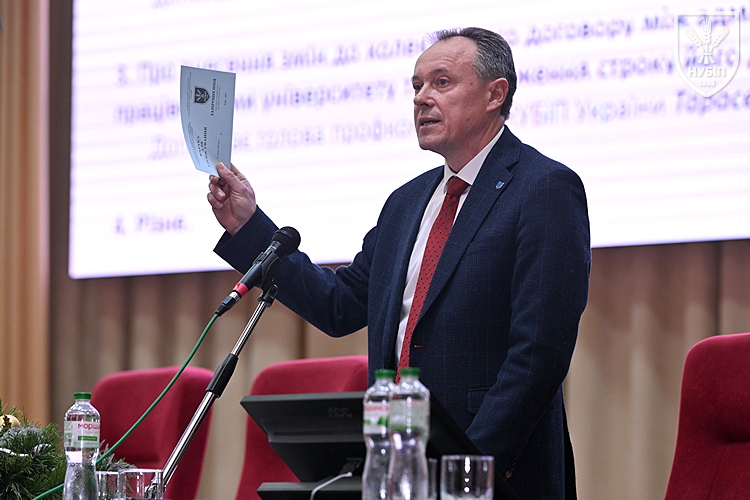 Учасники конференції заслухали звіт ректора НУБіП України Вадима ТКАЧУКА про результати роботи академічної спільноти, а також звіт голови профспілкової організації щодо виконання положень колективного договору у поточному році. У своїй доповіді ректор окреслив основні досягнення та пріоритетні напрями розвитку університету. Зокрема, увагу було зосереджено на підтримці Сил оборони України, забезпеченні якості освітнього процесу, розвитку наукової та інноваційної діяльності, зміцнені міжнародного співробітництва, підвищені фінансової стійкості, модернізації матеріально-технічної бази та ефективному управлінні господарською діяльністю.