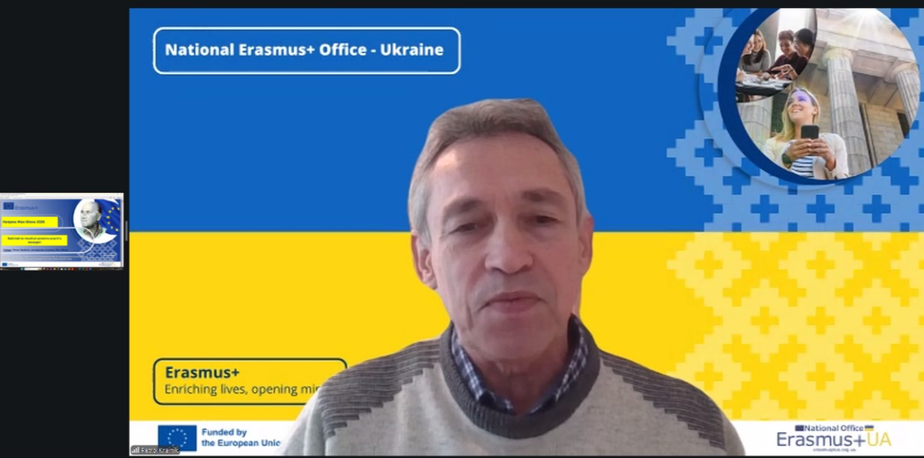 Спікером семінару виступив Петро КРАЙНІК, проєктний координатор Національного Офісу Erasmus+ України, який детально зупинився на змістових і технічних аспектах участі в конкурсі Jean Monnet. У своєму виступі він окреслив ключові вимоги до проєктних заявок, особливості їх структури та критерії оцінювання, а також звернув увагу на основні пріоритети програми Erasmus+. Зокрема, йшлося про інклюзію та різноманіття, цифрову трансформацію, захист довкілля та боротьбу зі змінами клімату, кібербезпеку, кібербезпеку для вразливих верств населення, а також про підтримку повоєнного відновлення України.