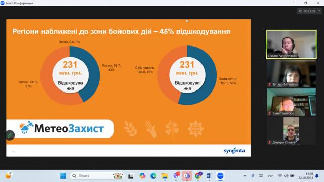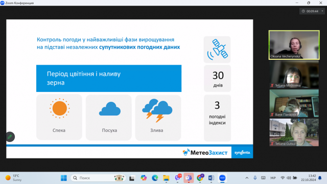22 жовтня 2024 р. магістри 1 р.н. спеціальності 051 «Економіка» в рамках вивчення дисципліни «Оцінка ризиків в агробізнесі» були слухачами гостьової лекції.Запрошений гість – Ксенія ВЕЧЕРИНСЬКА, головний експерт з розвитку бізнесу відділу страхових і банківських рішень компанії Сингента Україна. Зустріч відбулася у форматі онлайн на платформі Zoom. Тема лекції: «Індексне страхування від екстремальної погоди: як аграріям мінімізувати ризики недоотримання врожаю». Слухачі отримали детальну інформацію про програму індексного страхування посівів сільськогосподарських культур від несприятливих погодних умов «МетеоЗахист», яку реалізує міжнародна корпорація «Сингента».