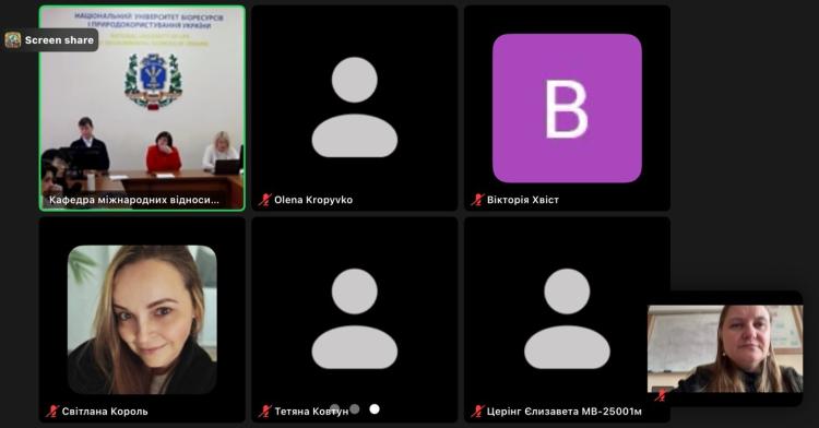 Участь у заході взяли студенти та викладачі НУБіП України та інших ЗВО України, зокрема доцент кафедри фінансів, обліку та оподаткування Івано-Франківського національного технічного університету нафти і газу Світлана Король, професори кафедри міжнародних відносин і суспільних наук НУБіП України Сергій Білан, Олена Любовець, доценти кафедри міжнародних відносин і суспільних наук НУБіП України Олена Кропивко, Людмила Радченко.