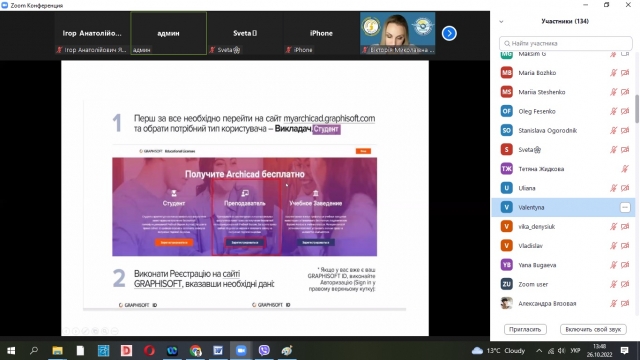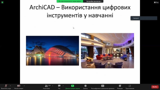 Головним спікером виступив доцент кафедри комп’ютерних технологій дизайну і графіки Юрій Романович Холковський, який детально роз’яснив особливості реєстрації та отримання навчального доступу до використання програмного комплексу, можливості побудови та вдосконалення будь-яких архітектурних форм та об’єктів.