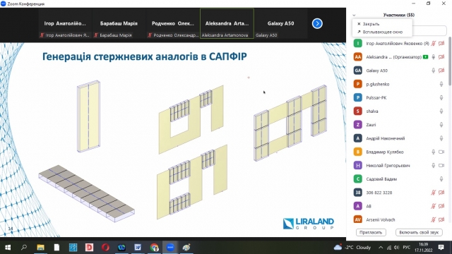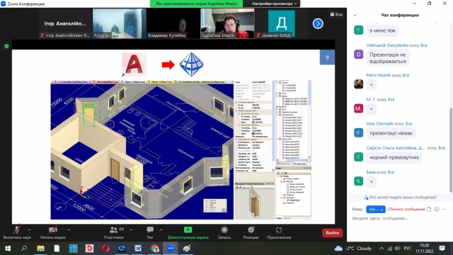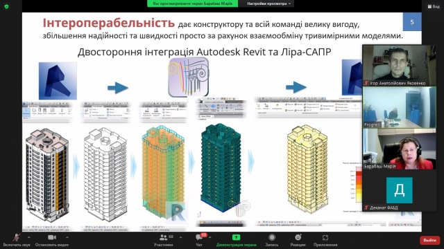 Науково-практичний семінар відбувся в онлайн-форматі на платформі ZOOM. Учасники семінару - представники ТОВ "ЛІРА САПР", ТОВ "Аллбау Софтвер", ТОВ "Архіматика", ТОВ "Прогресі" (м. Тбілісі, Грузія), кафедри КТБ та РА та ін. представили цікаві та грунтовні доповіді на актуальні теми в сфері моделювання та проектування будівель та споруд із використанням сучасних технологій та методик.