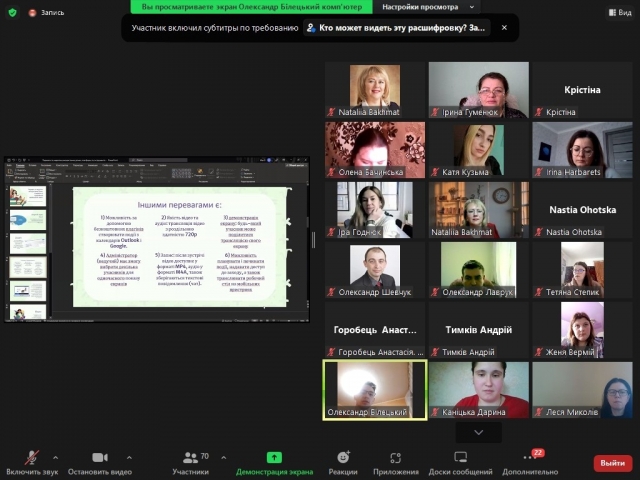 Учасники ділились досвідом організації дистанційного навчання у ЗВО (Олександр Лаврук, Наталія Бахмат), інклюзивно-ресурсних центрах (Лариса Ільницька), навчально-реабілітаційних центрах (Ірина Король) та закладах шкільної освіти (Анастасія Горобець, Сергій Ільчишин). До активної дискусії долучились студенти і магістранти студентського наукового гуртка "Маркетинг" - Катерина Якубовська, Олександр Решетюк, Олександр Білецький, Тетяна Степик, які окреслили переваги і недоліки дистанційного навчання з позиції здобувачів освіти.