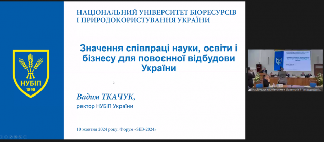 10 жовтня 2024 року за ініціативи Національного університету біоресурсів і природокористування України, Ради роботодавців та представників бізнесу, закладів вищої освіти та наукових установ відбувся Всеукраїнські форум «SEB 2024». Основним спрямуванням форуму було пошук, обговорення, визначення ефективних механізмів взаємовигідної співпраці між НУБіП України та бізнес-середовищем.