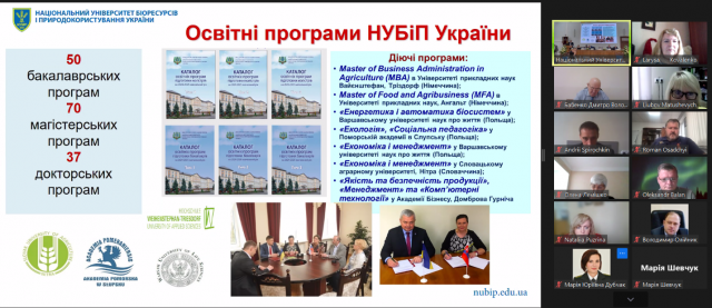 Виступ ректора Національного університету біоресурсів і природокористування України, д.е.н., професора Ткачука Вадима Анатолійовича був присвячений значенню співпраці науки, освіти і бізнесу. Основними моментами доповіді стали: освітні програми університету, ключові фактори становлення університету світового класу, основні міжнародні проекти тощо.