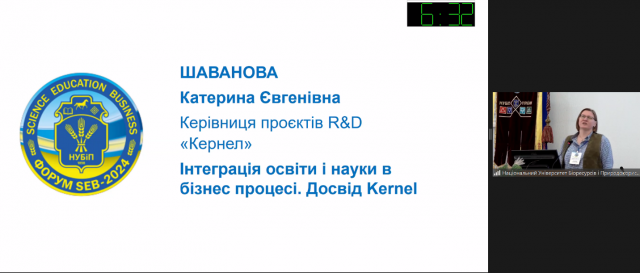 Запрошені учасники Всеукраїнськогофоруму «SEB 2024» говорили про досвід Кернел стосовно інтеграції освіти і науки в бізнес-процесі (керівниця проектів R&D «Кернел» Катерина Шаванова), про елементи енергозберігаючого землеробства за регулювання азотного живлення (заступник начальника відділу рослинництва A GRAIN – Тарас Корнієнко), про розвиток мереж у часі і необхідності змін (представник DTEK) та інші учасники засідання.