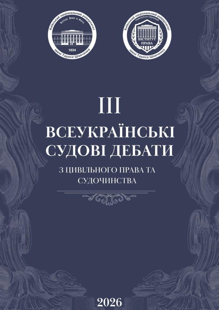14-29 березня 2026 року у Києві відбулися ІІІ Всеукраїнські судові дебати з цивільного права та судочинства 2026, організовані Навчально-науковим інститутом права Київського національного університету імені Тараса Шевченка за підтримки Касаційного цивільного суду у складі Верховного Суду. Захід став важливою платформою для студентів юридичних спеціальностей з різних університетів України, де вони могли продемонструвати практичні навички підготовки процесуальних документів та ведення цивільних справ у форматі моделювання судового засідання.