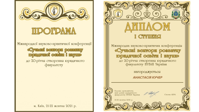 Секретар гуртка, Анастасія Кучер, реалізувала отримані знання під час роботи Міжнародної науково-практичної конференції "Сучасні вектори розвитку юридичної освіти та науки в Україні".