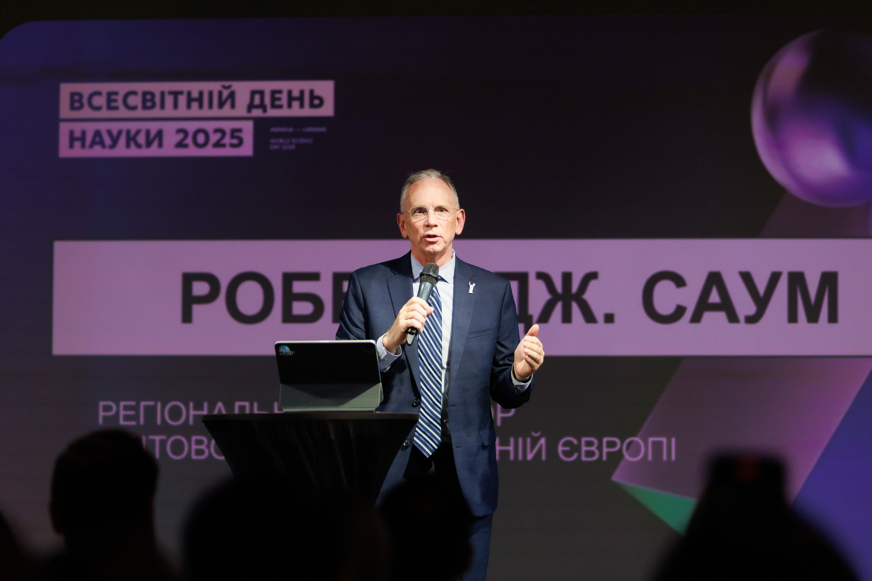 Регіональний директор Світового банку у Східній Європі Роберт САУМ під час свого виступу акцентував увагу на потребі зміцнення партнерства між науковими установами та бізнесом, щоб наукові ідеї перетворювалися на інноваційні рішення для економіки.
