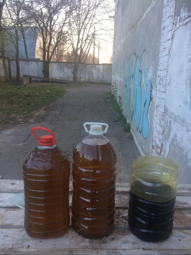 Фото 3. Зразки отриманого дизельного біопалива та гліцеринового осаду