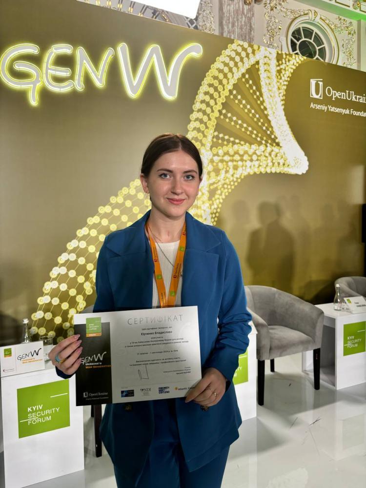 Студентка спеціальності «Міжнародні відносини, суспільні комунікації та регіональні студії» Владислава Юрченко взяла участь у 10-му Київському Безпековому Форумі для молоді «Gen W. Українське покоління війни».