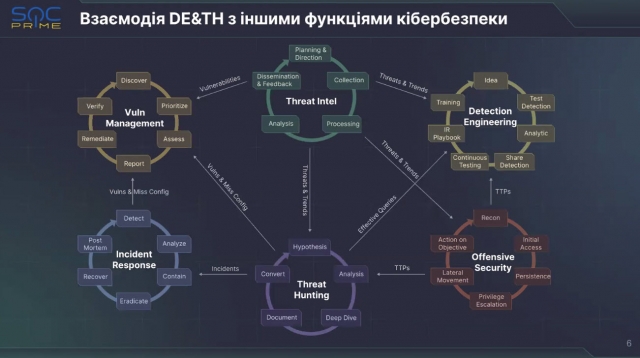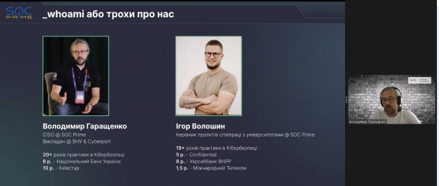 На вебірнарі Володимир Гаращенко, CISO компанії SOC Prime експерт з питань кібербезпеки з більш ніж 20-ти річним стажем роботи в цій галузі у державному та приватному секторі, який стисло розповів про: порівняння підходів до виявлення кіберзагроз; взаємодію DE&TH з іншими функціями кібербезпеки; застосування фреймворку MITRE ATT&CK, приклади практики; застосування формату SigmaRules для опису виявлення загроз; необхідні знання та сертифікації.
