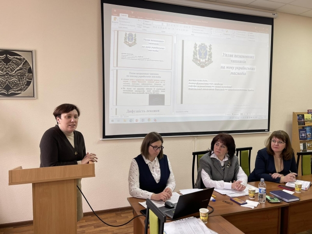 Наукову доповідь за темою «Уплив позамовних чинників на мову українських масмедіа» представила професор кафедри журналістики та мовної комунікації Марина Навальна. В її дослідній роботі порушено питання про те що в сучасних умовах повномасштабної російсько-української війни український інформаційний простір зазнає постійних змін, а це своєю чергою впливає на лексичну систему. В обговоренні взяли участь професор кафедри журналістики та мовної комунікації Тетяна Семашко.
