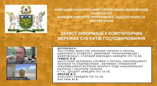Серія академічних семінарів була розпочата в НУБіП України 10 січня 2022 р., зокрема, відбувся круглий стіл «Проблеми та перспективи підготовки фахівців з кібербезпеки в Україні», у якому взяли участь представники кафедри інженерії програмного забезпечення та кібербезпеки Київського національного торговельно-економічного університету та провідні стейкхолдери Віталій Чубаєвський – директор Директорату стратегічного планування та європейської інтеграції МВС, полковник поліції; Володимир Звєрєв – заступник керівника служби з питань інформаційної безпеки та кібербезпеки, керівник управління інформаційної безпеки Апарату Ради Національної безпеки і оборони України.