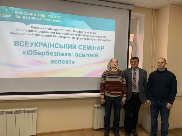 Обговорення актуальних проблем було продовжено 20 січня 2022 р. на базі Київського університету ім. Бориса Грінченка, де відбувся Всеукраїнський семінар «Кібербезпека: освітній аспект». З доповідями виступили представники ЗВО м.Києва: Київський національний торговельно-економічний університет, Національний університет біоресурсів і природокористування, Київський Університет імені Бориса Грінченка.
