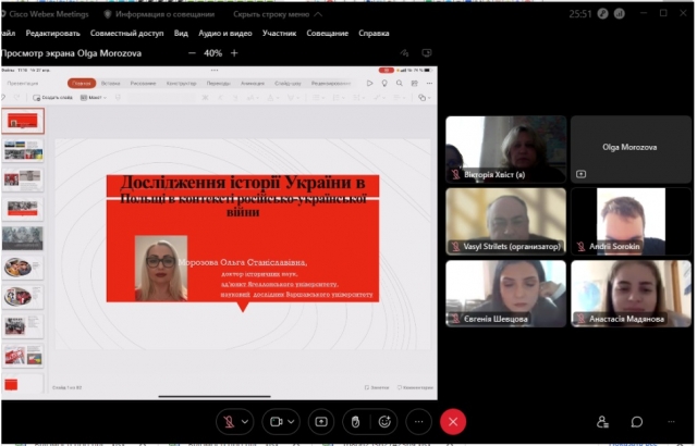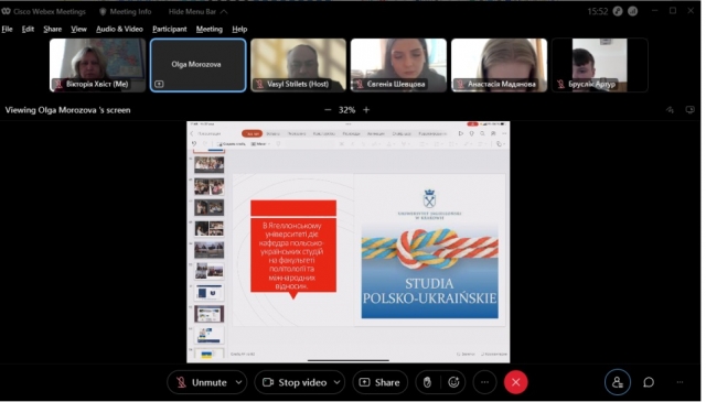 27 квітня на кафедрі міжнародних відносин і суспільних наук гуманітарно-педагогічного факультету НУБіП України відбулась онлайн-зустріч з доктором історичних наук, доцентом, ад’юнктом Ягеллонського університету МОРОЗОВОЮ Ольгою Станіславівною на тему: «Українсько-польська історія: спільне та відмінне в концепціях сучасних українських і польських істориків» за участю магістрів, аспірантів та викладачів кафедри.