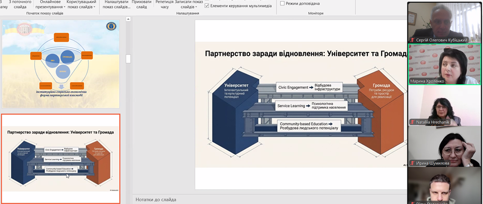 2 квітня 2026 року на кафедрі управління та освітніх технологій гуманітарно-педагогічного факультету відбулася гостьова лекція доктора педагогічних наук, професора, першого проректора Глухівського національного педагогічного університету імені Олександра Довженка Марини Володимирівни Хроленко на тему «Моделі ефективної взаємодії університету, бізнесу та громад: досвід і перспективи розвитку управлінських програм».
