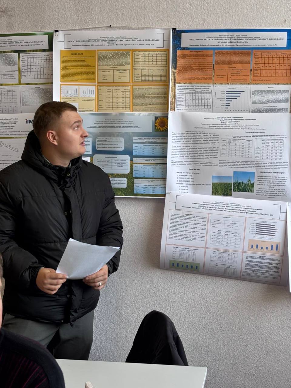 25.11.2025 року на кафедрі рослинництва магістри 2-го року навчання представляли результати своїх досліджень у форматі візуальних постерів, які лаконічно, але змістовно відображали актуальність, методи, ключові результати та наукову новизну їхніх кваліфікаційних робіт