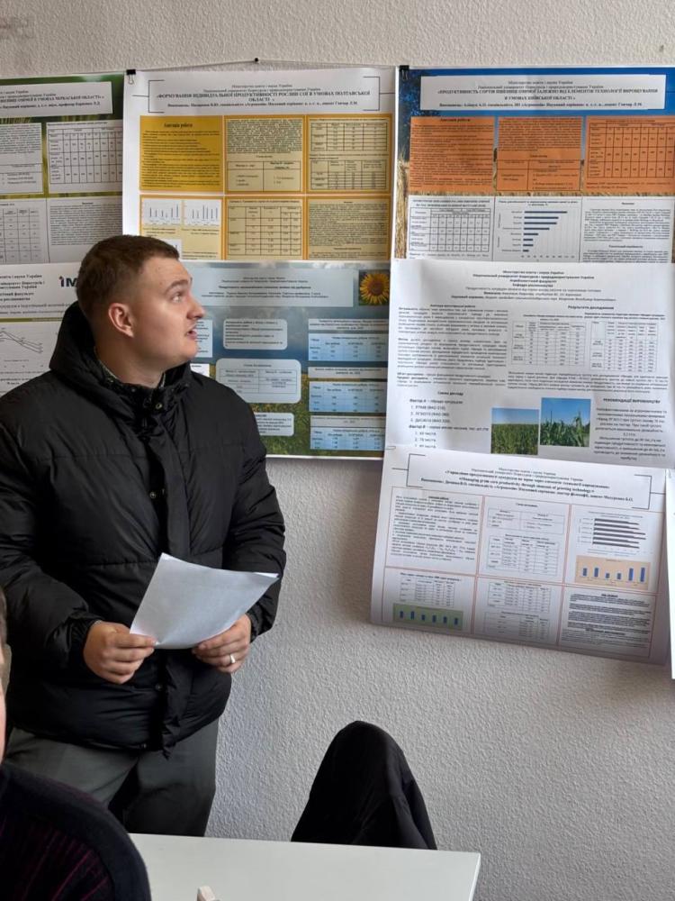 Першою результати своїх досліджень представляла Ангеліна ВОЛОЩУК за темою «Реалізація генетичного потенціалу гібридів кукурудзи в Індустріальній молочній компанії». Наступним був Роман ОЦАБРИК з темою «Продуктивність гібридів соняшника залежно від густоти стояння рослин в умовах Кіровоградської області»