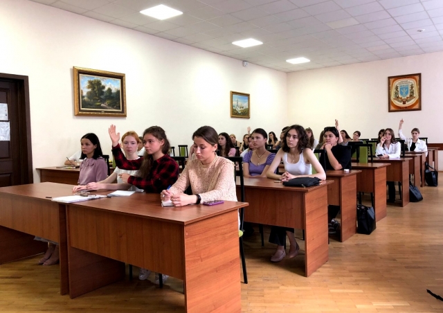 Заступник декана Світлана Харченко поінформувала студентів про можливості для студентів науково розвиватися в університеті: про наукові студентські гуртки, що функціонують на кафедрах факультету (а їх на факультету 30), про конкурс студентських наукових робіт, про премії, про гранти, про наукову мобільність студентів.