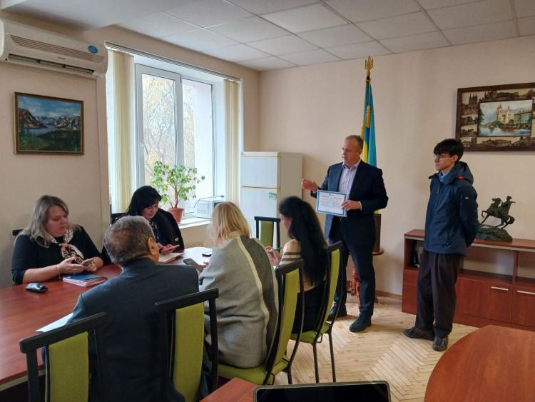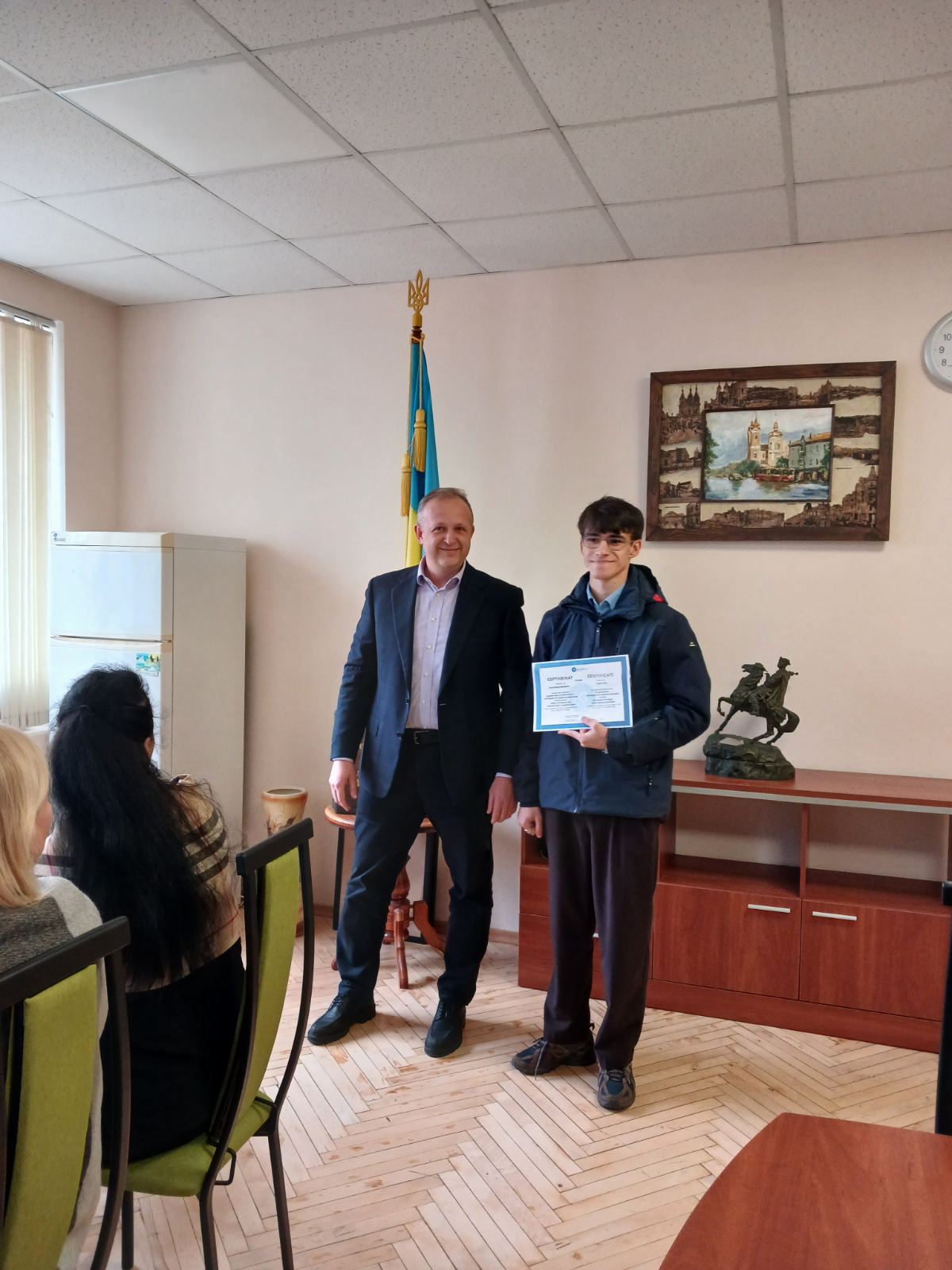 Сертифікат особисто вручив декан економічного факультету Андрій Музиченко в присутності завідувачів кафедри факультету, підкреслюючи високий рівень підготовки студента, відповідальність та цілеспрямованість.