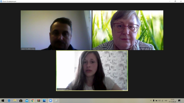 Дистанційний іспит розпочався о 8:30 з надсилання екзаменаційного білету (із 10 тестовими запитаннями та 2 питаннями для відповіді у вигляді «ессе») і отримання відповідей (фотокопії) від здобувача за допомогою електронної пошти та подальшої Zoom-співбесіди екзаменаторів і екзаменованого.