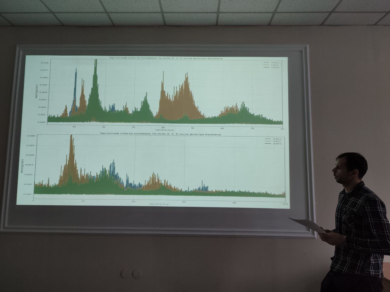 Кожен виступ здобувача супроводжувався представленням слайдів. Не дивлячись на відключення електроенергії, персонал кафедри конструювання машин і обладнання зміг забезпечити відносно комфорті умови захисту, так що цей чинник не став перепоною для оцінки рівня знань здобувачів, що вони його отримали під час навчання. У кінці виступів члени комісії задали численні фахові запитання. Із відповідей здобувачів було зрозуміло, що вони відповідально підійшли до підготовки захисту власного доробку. У відповідях студенти показали здобуті компетентності, які поєднали як теоретичні знання так і практичний досвід. Члени комісії залишились задоволеними відповідями та у цілому достатньо високо оцінили представлені до захисту результати.