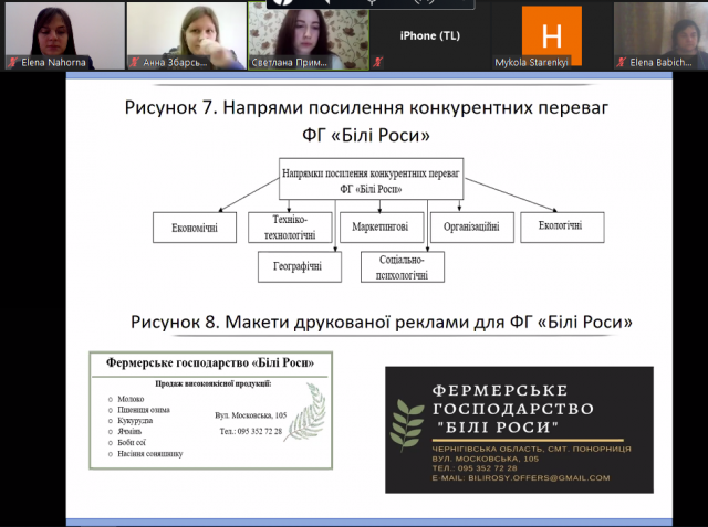 Екзаменаційна комісія розпочала свою онлайн роботу через сервіс Zoom. З вступним словом до студентів та комісії звернувся декан факультету аграрного менеджменту, доцент Остапчук Анатолій Дмитрович, оголосивши наказ ректора Станіслава Миколайовича Ніколаєнка про склад екзаменаційної комісії та побажавши студентам успішного захисту магістерських робіт. Голова комісії – Тетяна Леонідівна – також приєдналася до вітальних слів, ознайомив студентів із регламентом проведення захисту та розпочала роботу ЕК та захист магістерських робіт.