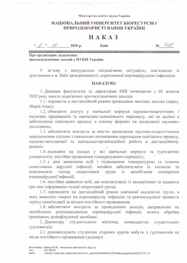 Увага! Наказ "Про організацію додаткових протиепідемічних заходів у НУБіП України" пн, 5 жов 2020 - 03:00