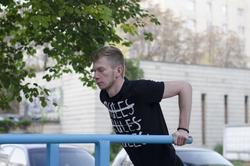 В гуртожитку №5 було проведено змагання з віджимання на брусах