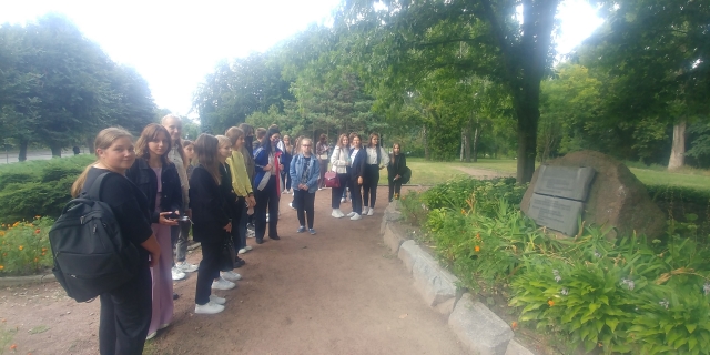 В цьому році доля звела мене зі студентами гуманітарно-педагогічного факультету (міжнародниками та філологами) та факультету захисту рослин, біотехнологій та екології. З ними ми і здійснили подорож історичними місцями альма-матері. Звісно ж відвідали Алею Слави, де кожна постать – це камінчик в розбудову університету, освіти і науки України, а значить і держави.