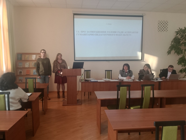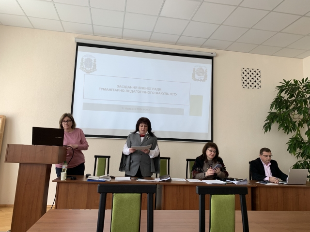 Вчена рада схвалила рекомендації навчально-методичної ради гуманітарно-педагогічного факультету. Були розглянуті й інші важливі питання життєдіяльності гуманітарно-педагогічного факультету.