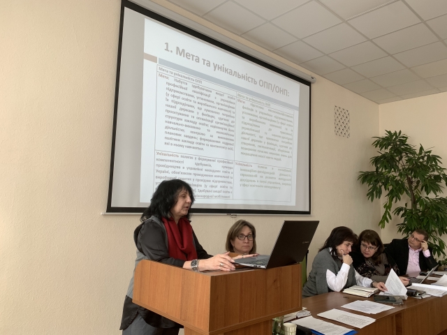Доктор пед. наук, професор Наталія Гречаник та доктор пед. наук, професор Ірина Шумілова, які є гарантами ОНП та ОПП «Управління навчальним закладом», представили мету, особливість, цілі, зміст та унікальність програм; детально розкрили сильні сторони освітньо-наукової та освітньо-професійної програм «Управління навчальним закладом»; перелік навчальних дисциплін (обов’язкових та вибіркових), що забезпечують унікальність ОНП/ОПП «УНЗ»; ОК, які роблять ОП конкурентоздатною в порівнянні з вітчизняними та іноземними аналогами; перспективні заходи на найближчі 3 роки задля розвитку ОПП/ОНП «УНЗ» та інші важливі питання майбутньої акредитації.